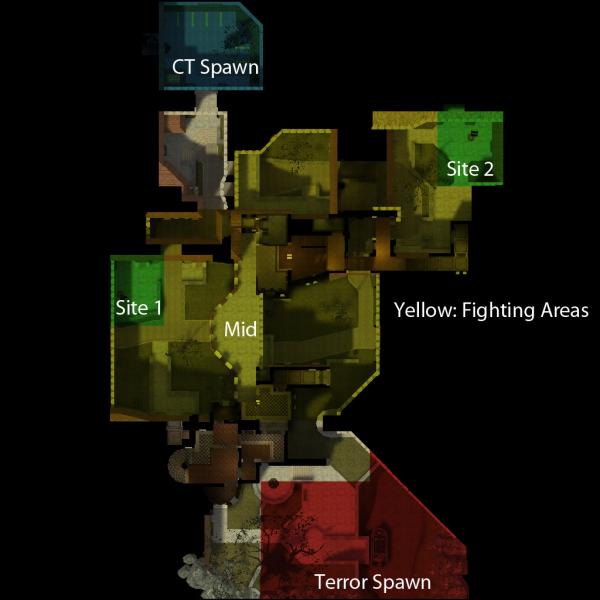 As with all Counter-Strike maps, the Counter-Terrorists have a shorter path to both bomb sites, allowing them to position themselves ready for the Terrorists to attack.