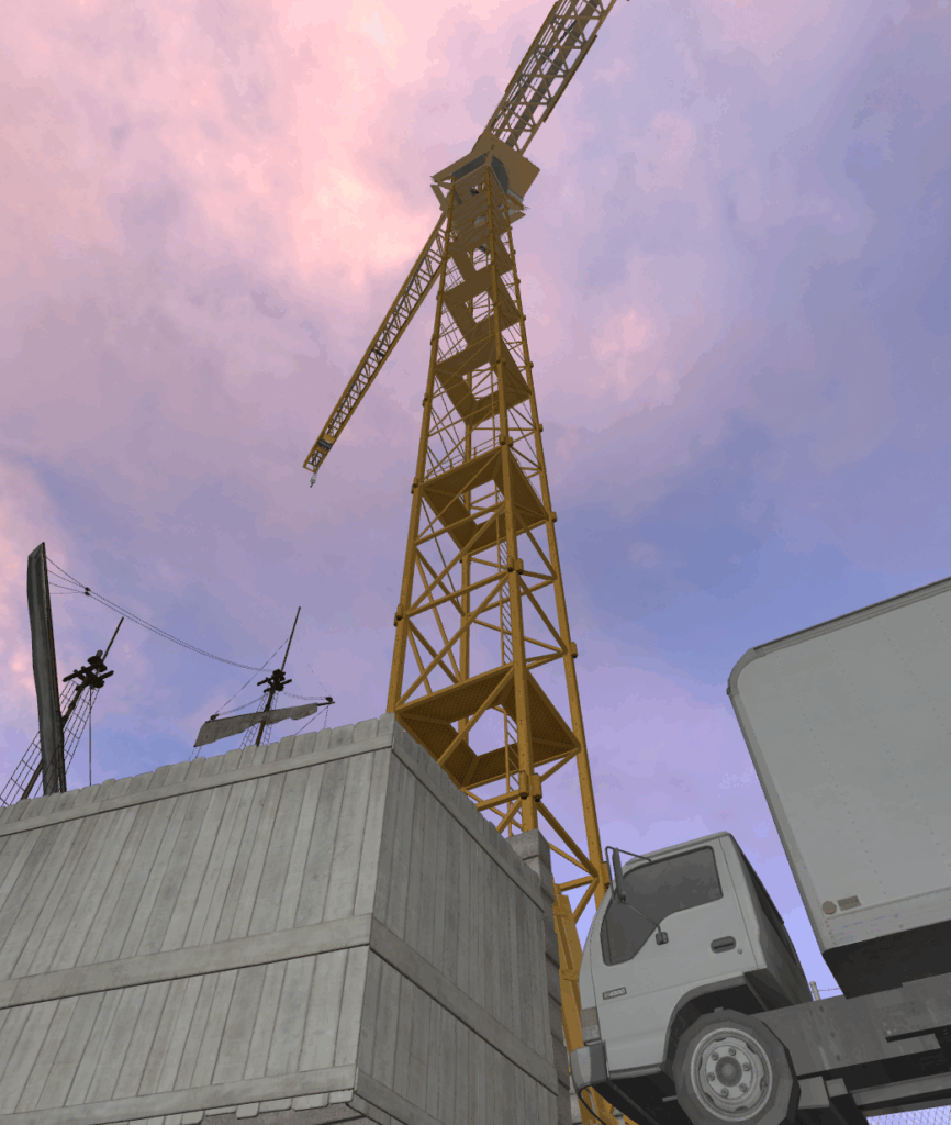 I wanted to find a crane with a large circular base, more akin to the type that operate in dockyards, however I couldn’t find any similar ones in the CS2 files. Some existed online but none were under a license I could use, so I had to opt for this yellow crane and work around it.
