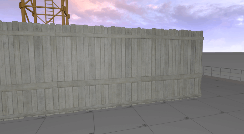 You can see on the right of the topdown image above that I have started to use this fence asset to block off sections. This is my solution to not being able to create bespoke assets for each part of the map. Given enough time I could probably have made unique barriers, but this will have to do for now.